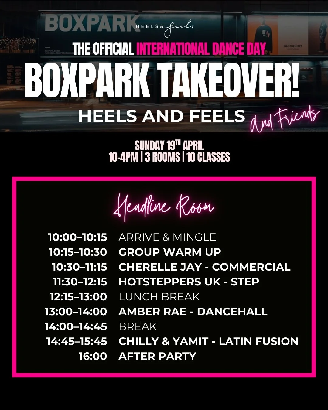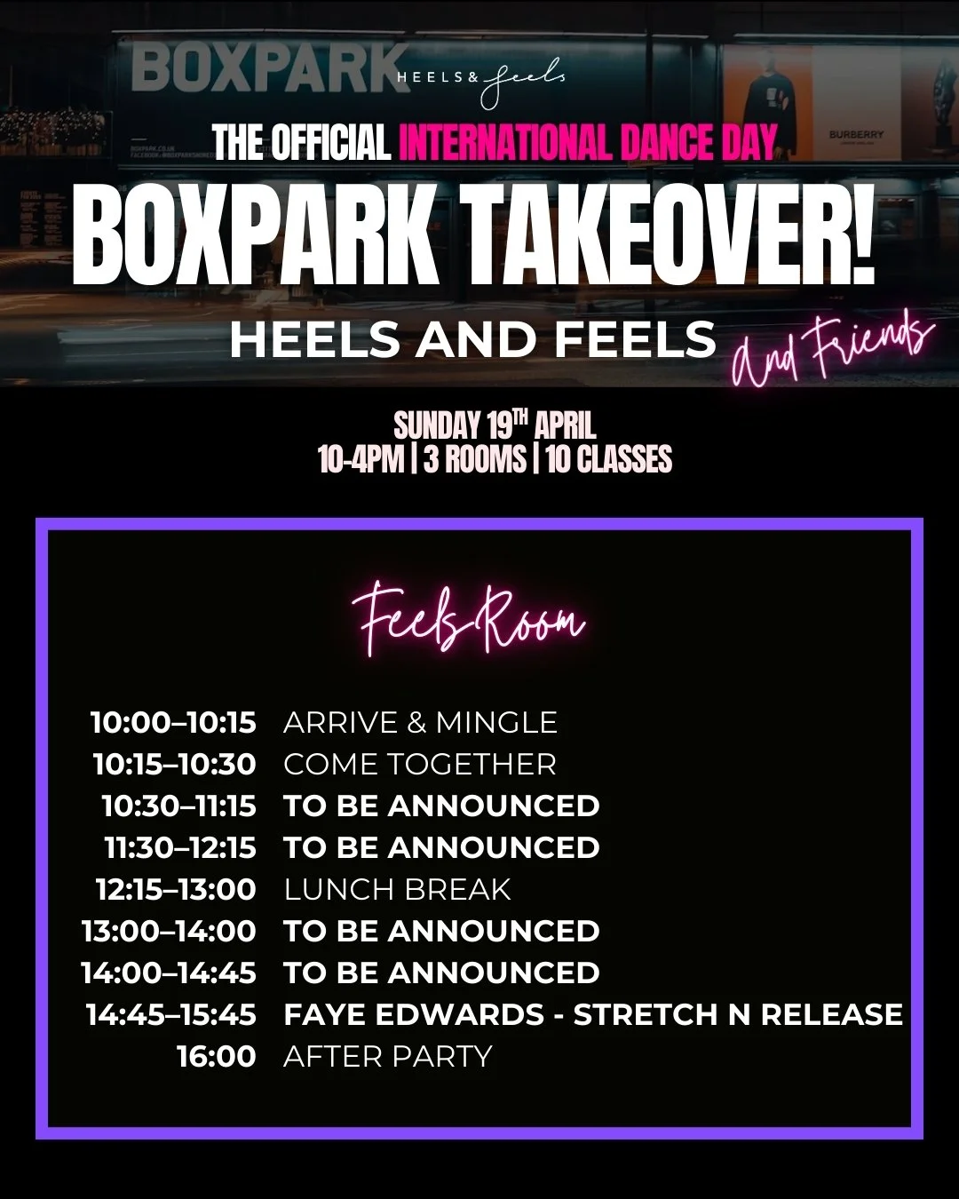 To celebrate International Dance Day, Heels & Feels is bringing the community together for a full day of dance, movement and connection at BOXPARK Shoreditch.